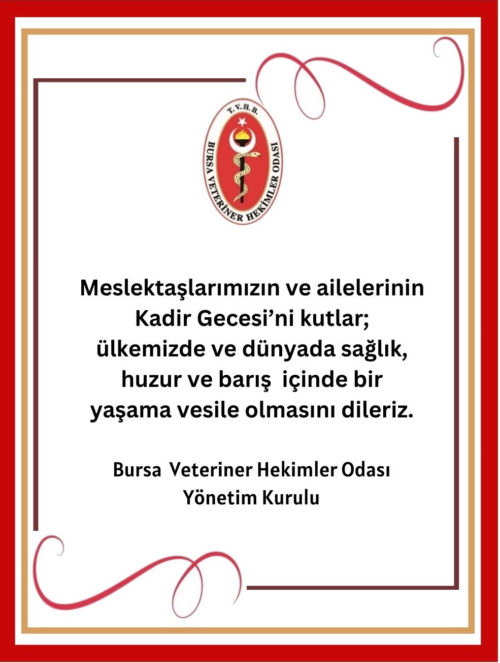 Meslektaşlarımızın ve ailelerinin Kadir Gecesi’ni kutlar; ülkemizde ve dünyada sağlık, huzur ve barış içinde bir yaşama vesile olmasını dileriz.